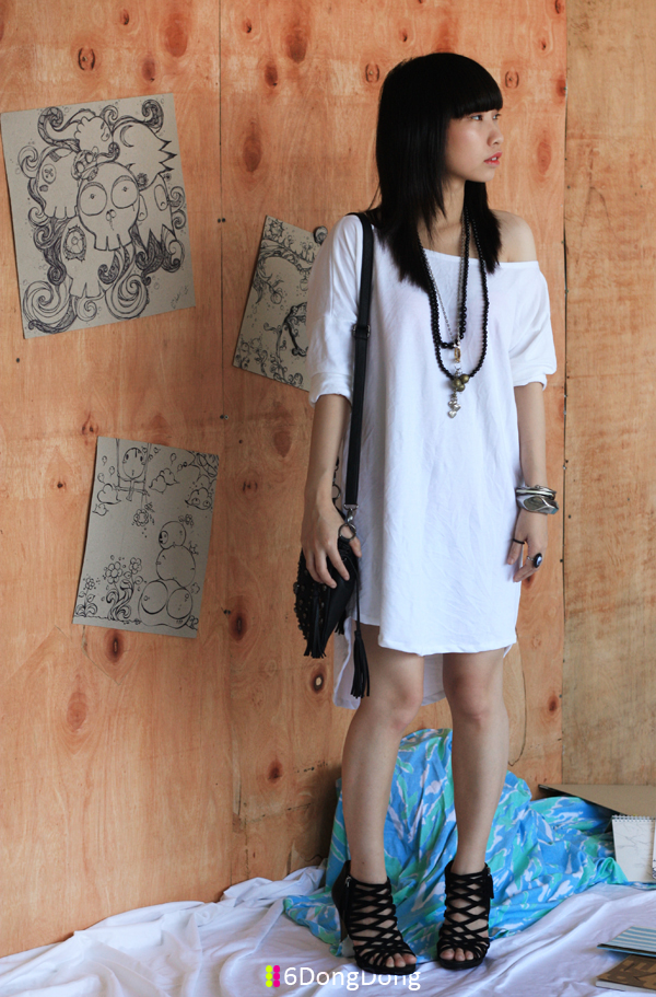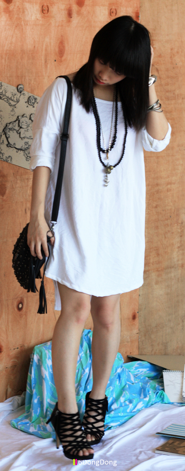 White dress from 6DongDong | Accessories from 6DongDong&KStyle | Skull bag was bought in Singapore | Nine West heels