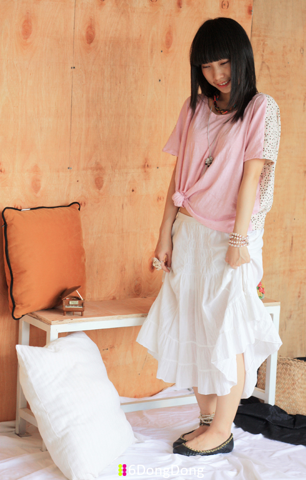 Double sided Tee and trousers from 6DongDong | White skirt is gifted | Accessories from 6DongDong & Kstyle | Some accessories are gifted | ALDO flats
