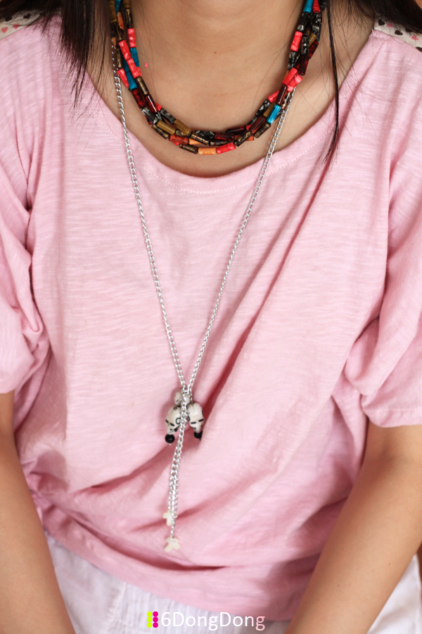Vòng cổ nhựa màu mè của Kstyle đeo như vòng tay