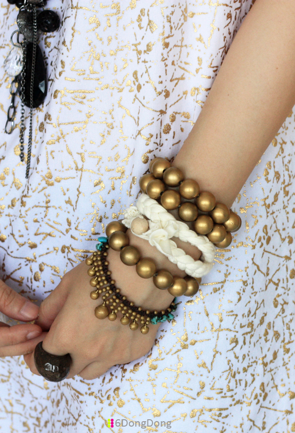 Dress from 6DongDong | Beaded necklace and bracelets from 6DongDong | Chain necklace & Bell bracelet & Anklet are gifted | ALDO flats