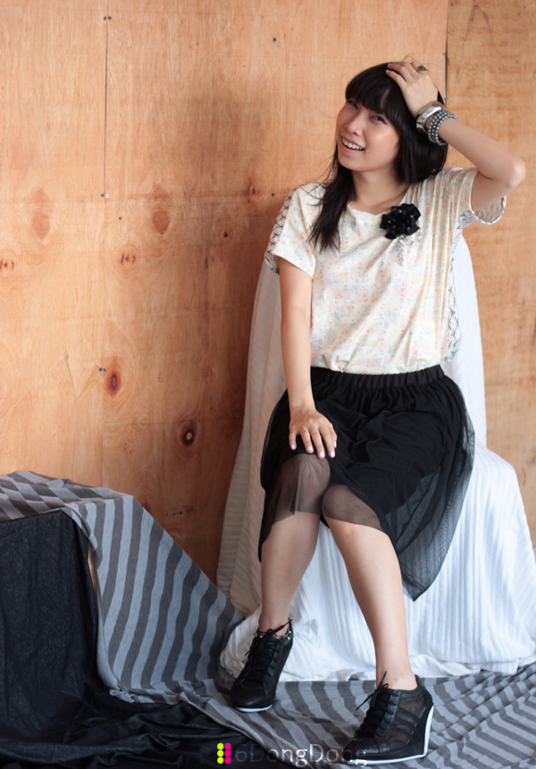 Double sided Tee and black skirt from 6DongDong | Shorts from AE | Accessories from Kstyle and 6DongDong | Adidas SLVR shoes