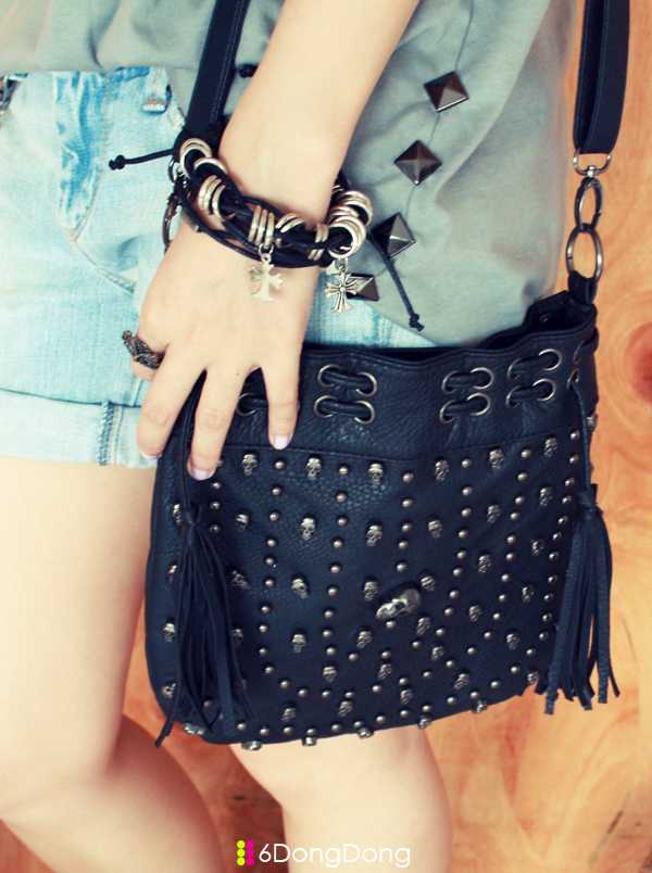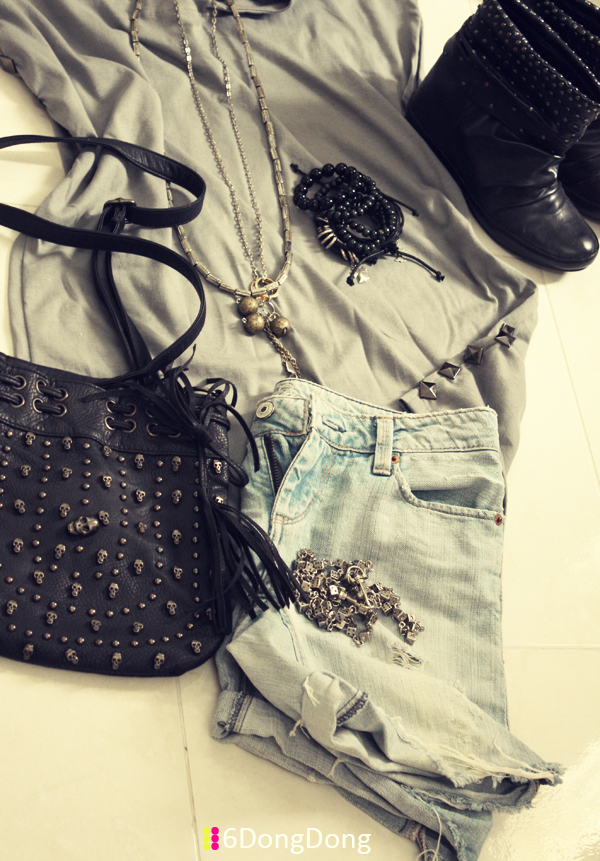 Tee by 6dongdong | Accessories by 6dongdong&Kstyle boutique | Old jeans | ALDO boots | Skull bag is bought in Singapore