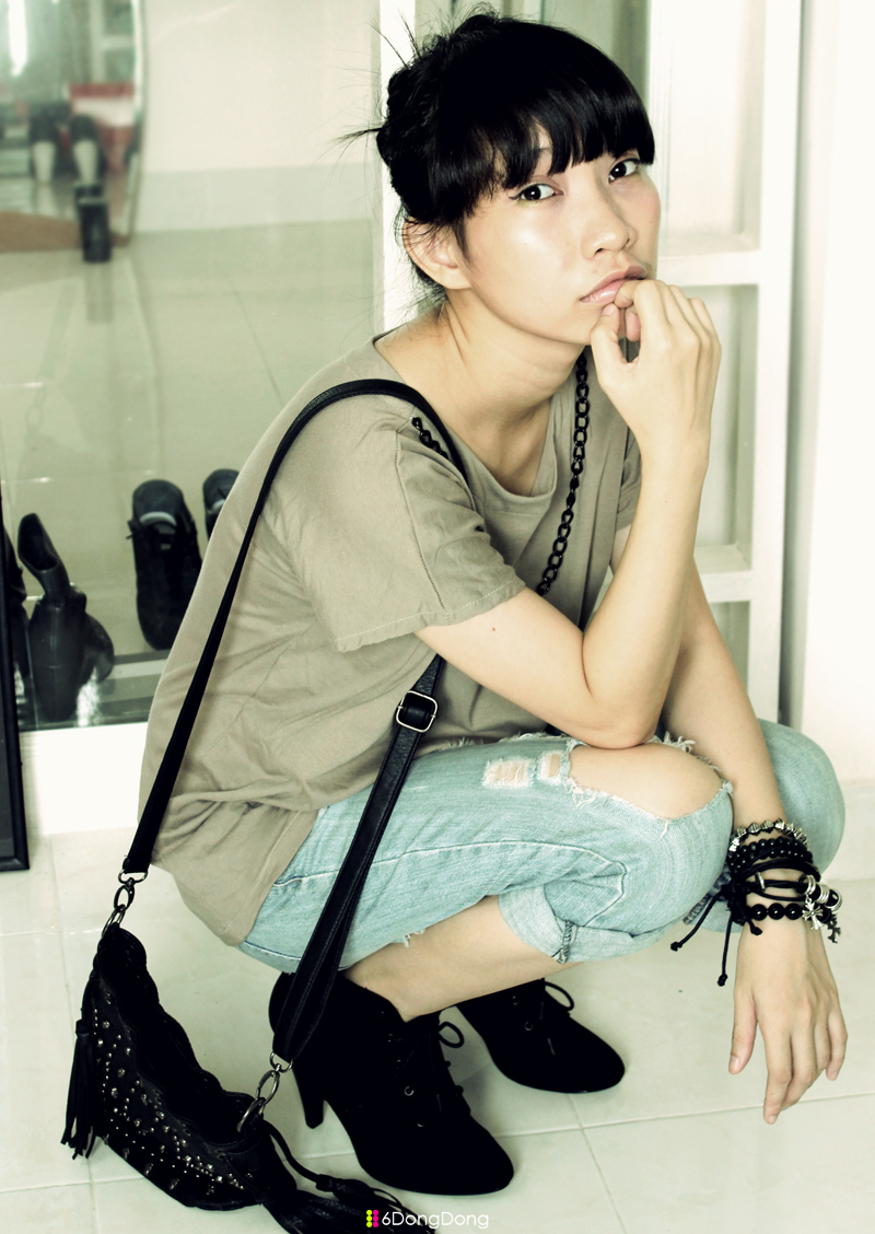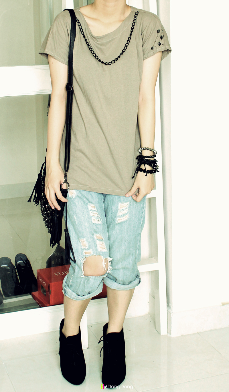 6dongdong Tee & Accessories | Old jeans | Skull bag from Singapore | Nine West boots