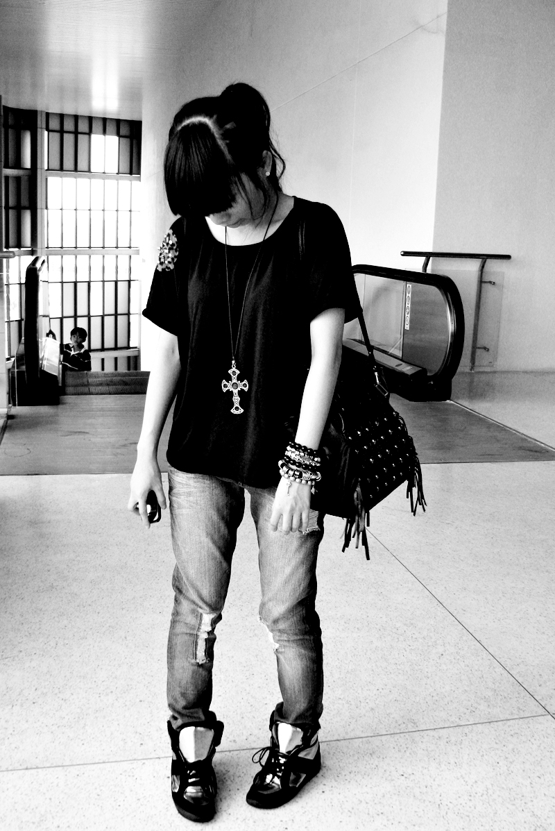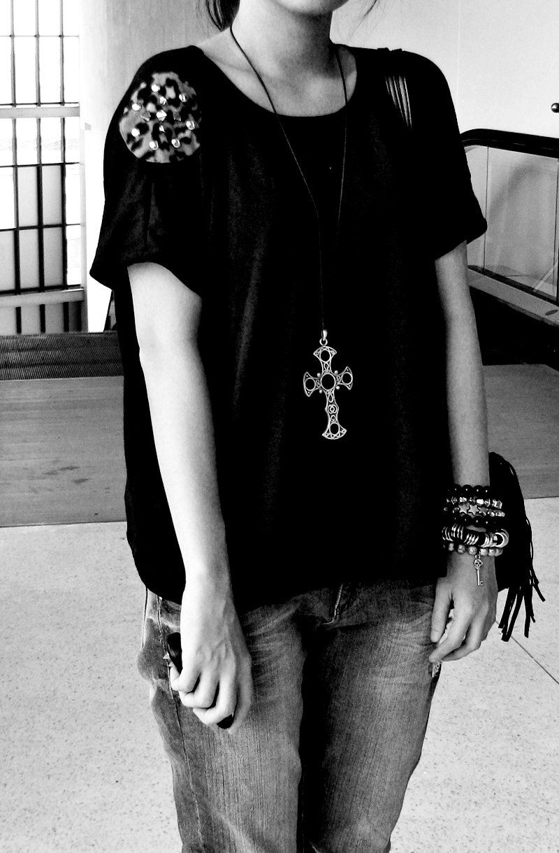 6dongdong top & bracelets | Gifted necklace & bag | Ninomaxx jeans | ASOS sneakers