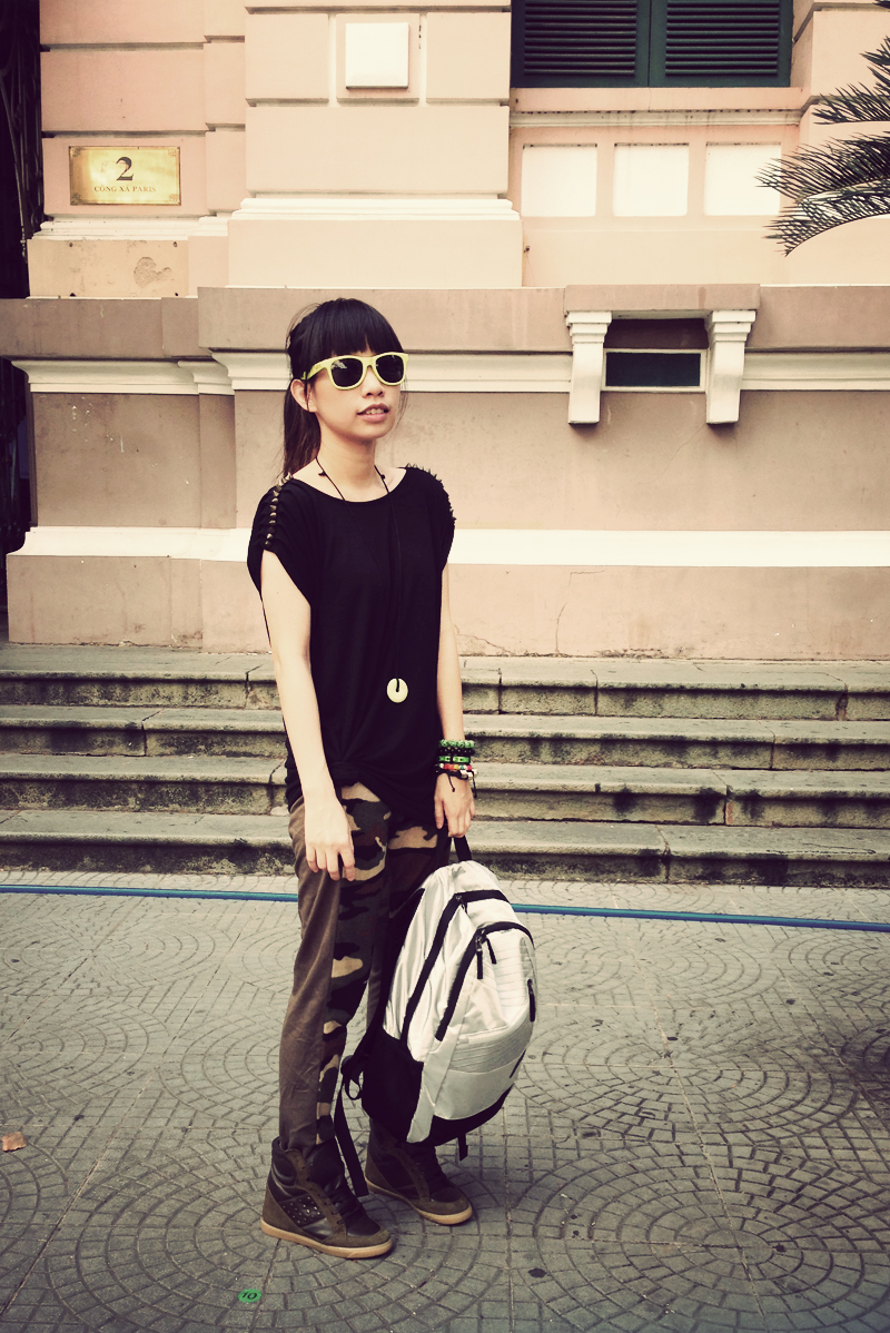6dongdong Spike Top & Pants | Fox backpack | ASOS sneakers | Vans sunglasses