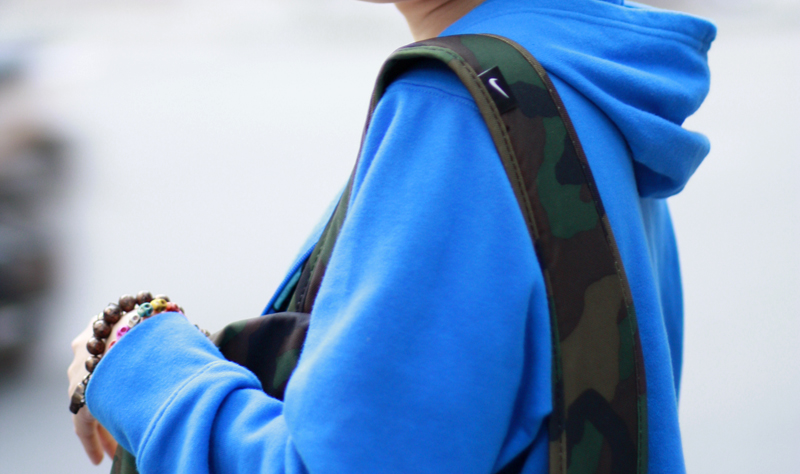 6dongdong oversized top | Old Navy Hoodie | Old shorts | Uniqlo tights | Nike sneakers & backpack
