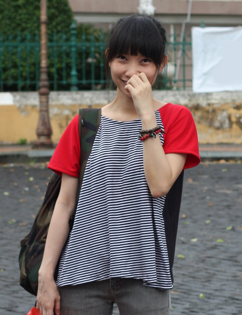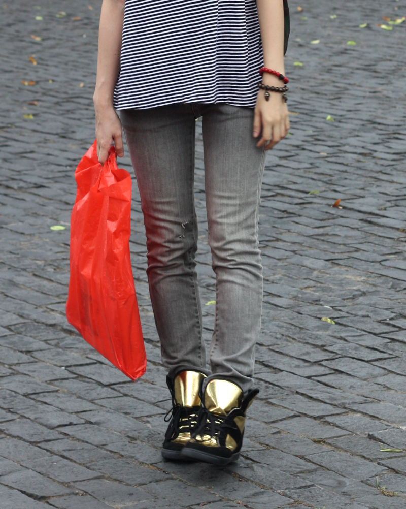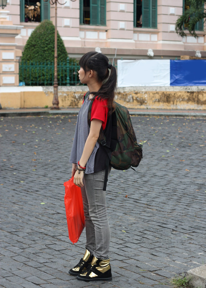 6dongdong croptop & bracelets | Old skinny jeans | ASOS sneakers | Nike backpack