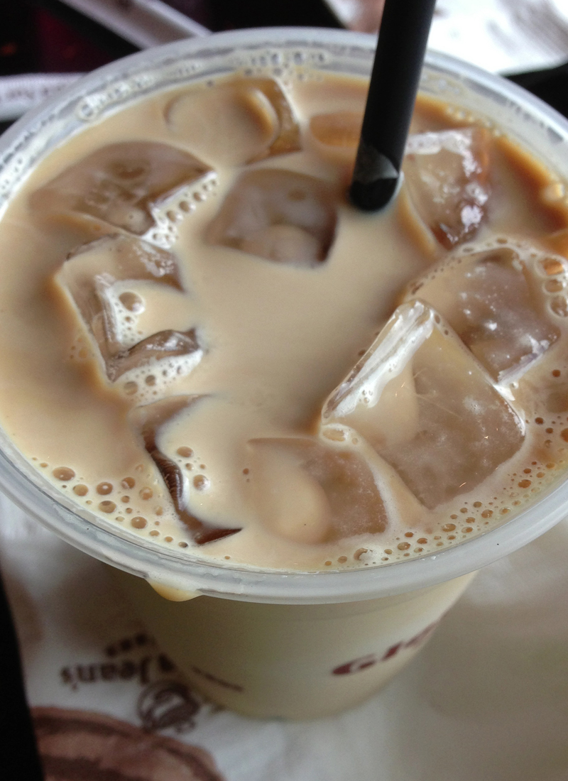 windy & sunny noon, enjoyed my favorite iced latte at my fav coffee shop.