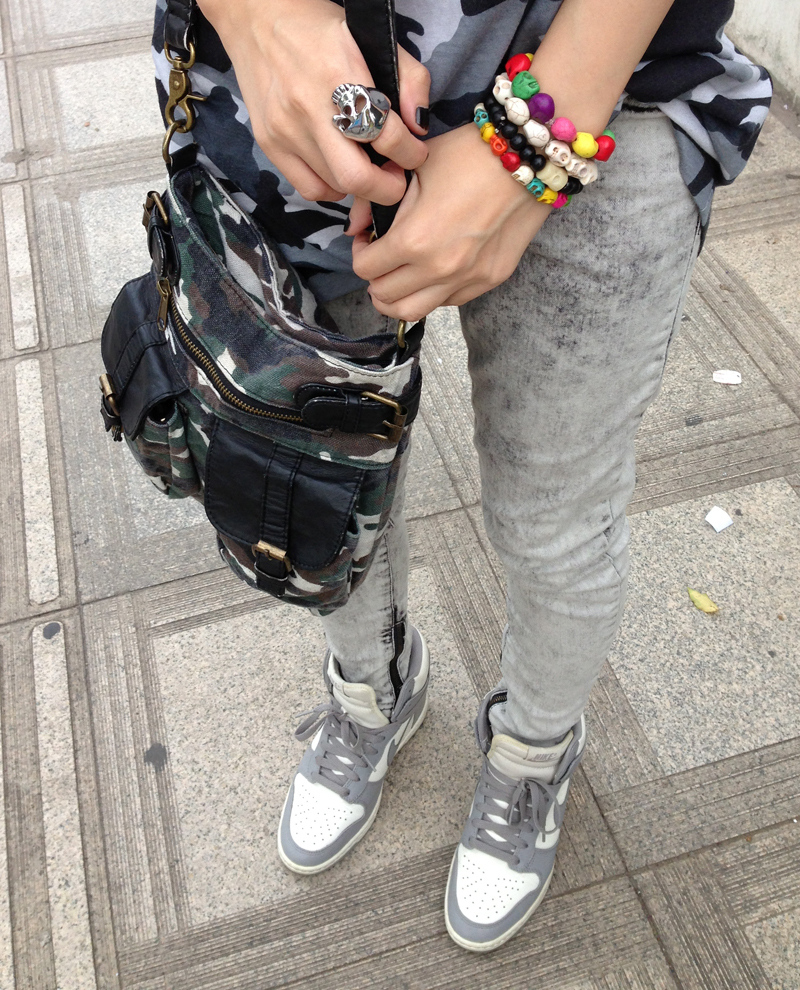 Gifted camo bag | Gifted Divided by H&M ring | DIY bracelets