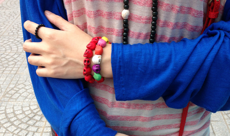 6dongdong top & skull bracelets | Divided by H&M skull ring | Adidas SLVR shoes | Marc by Marc Jacobs bag