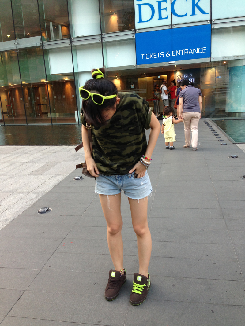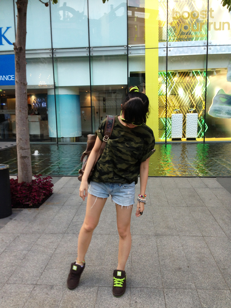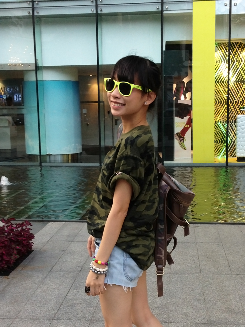 Old Navy boy Tee | Camo backpack bought in Hanoi | Vans sunglasses | DC sneakers |