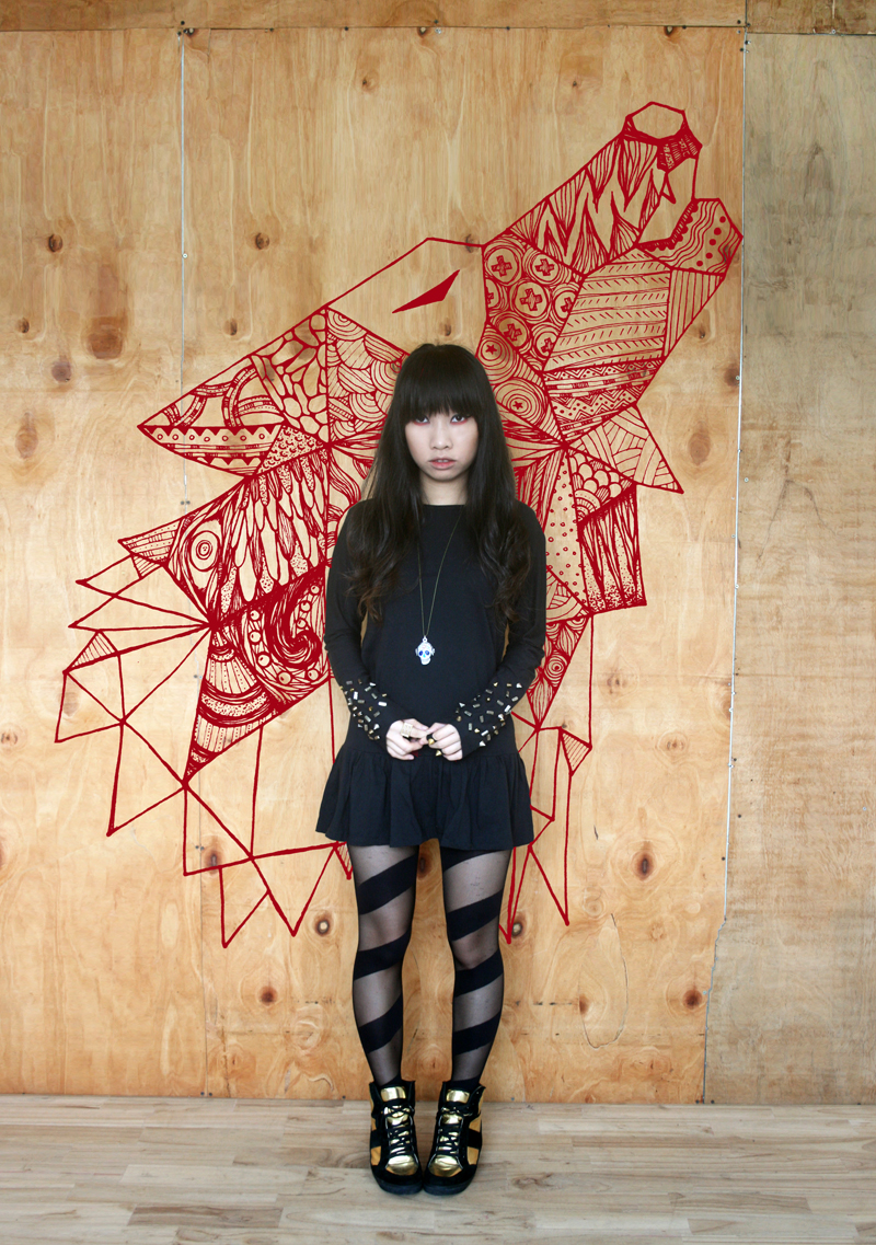 6dongdong StreetVI studded sleeves dress | TOPSHOP tights | ASOS sneakers | Zara necklace | DIY Spiked rings