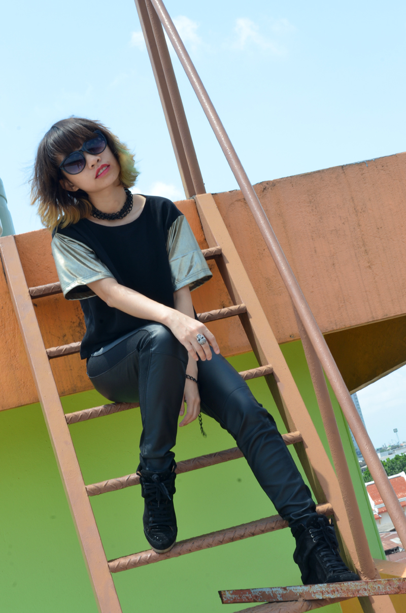 6dongdong Pure Gold croptop | H&M pants | Zara sneakers | DIY necklace & bracelet | Noon After Nine skull ring