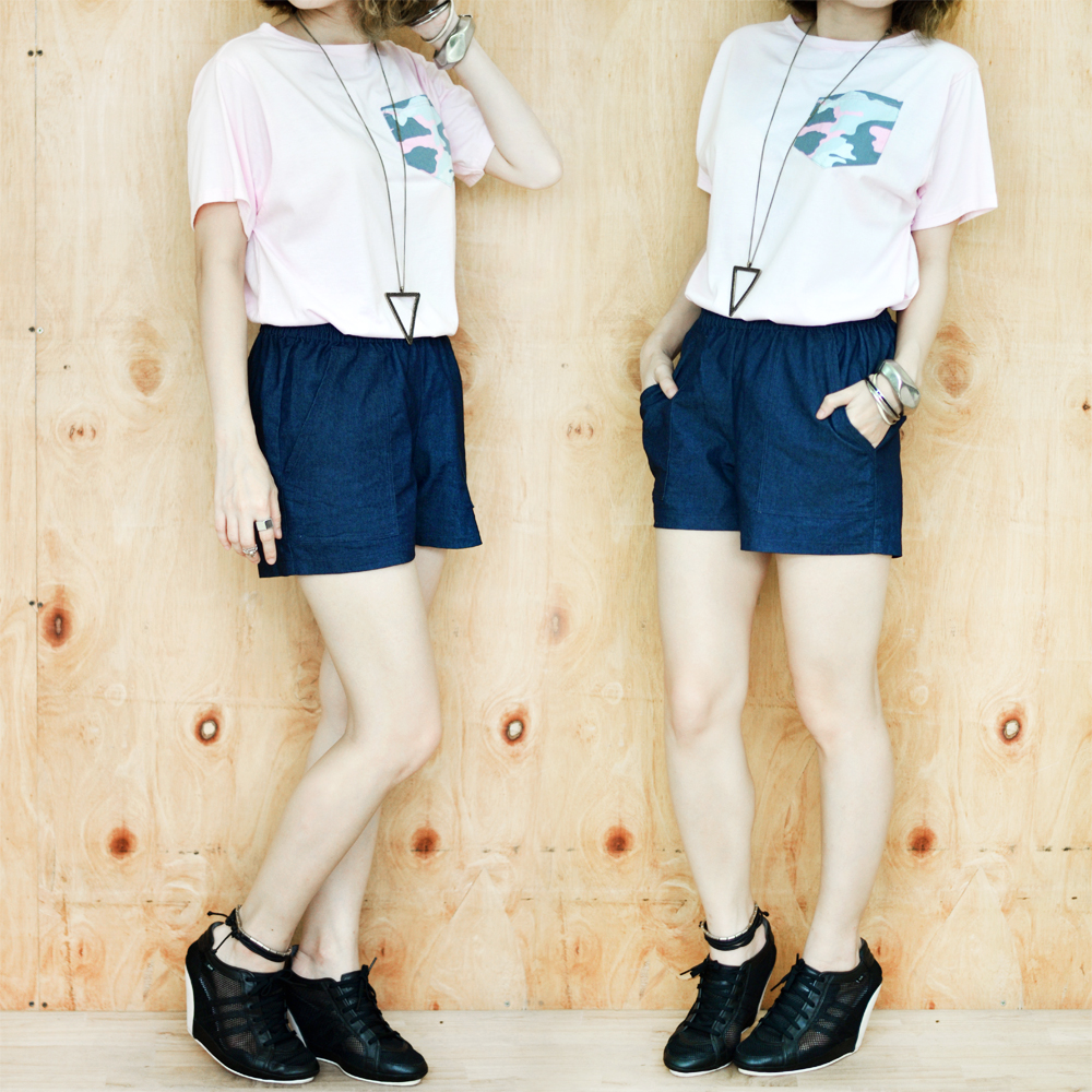 This time we try to mix up with only with short bottoms for an active and casual look of Pikamo tee.