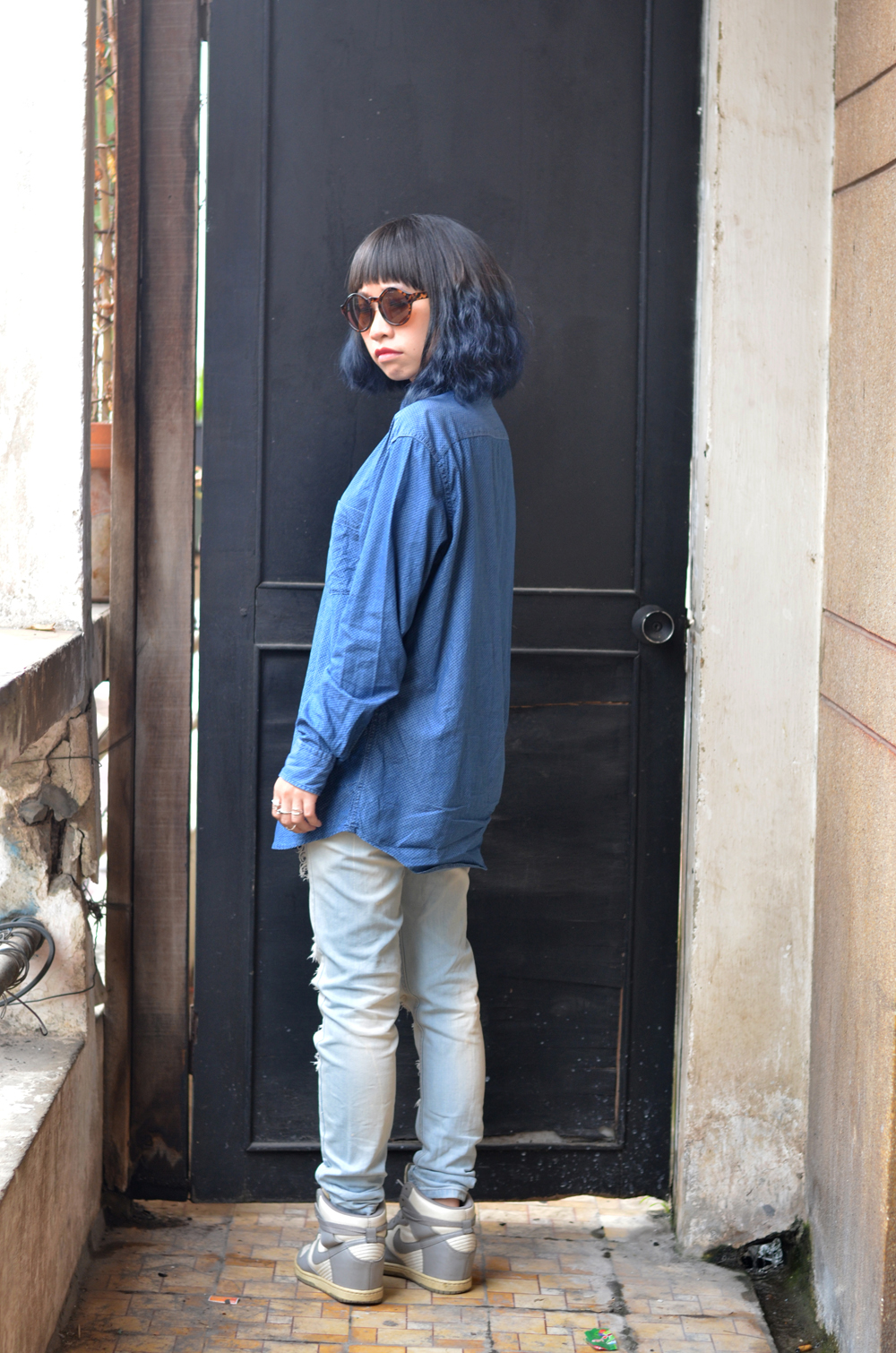 Uniqlo shirt | Mango ripped jeans | Nike Dunk Sky Hi sneakers | Cotton On sunglasses | Claire’s rings | H&M necklace