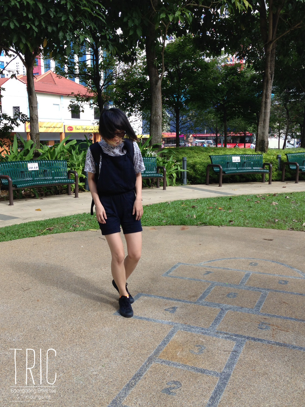 6dongdong Enve tee & Tric dungaree | Converse sneakers | Cotton On shades | Adidas backpack