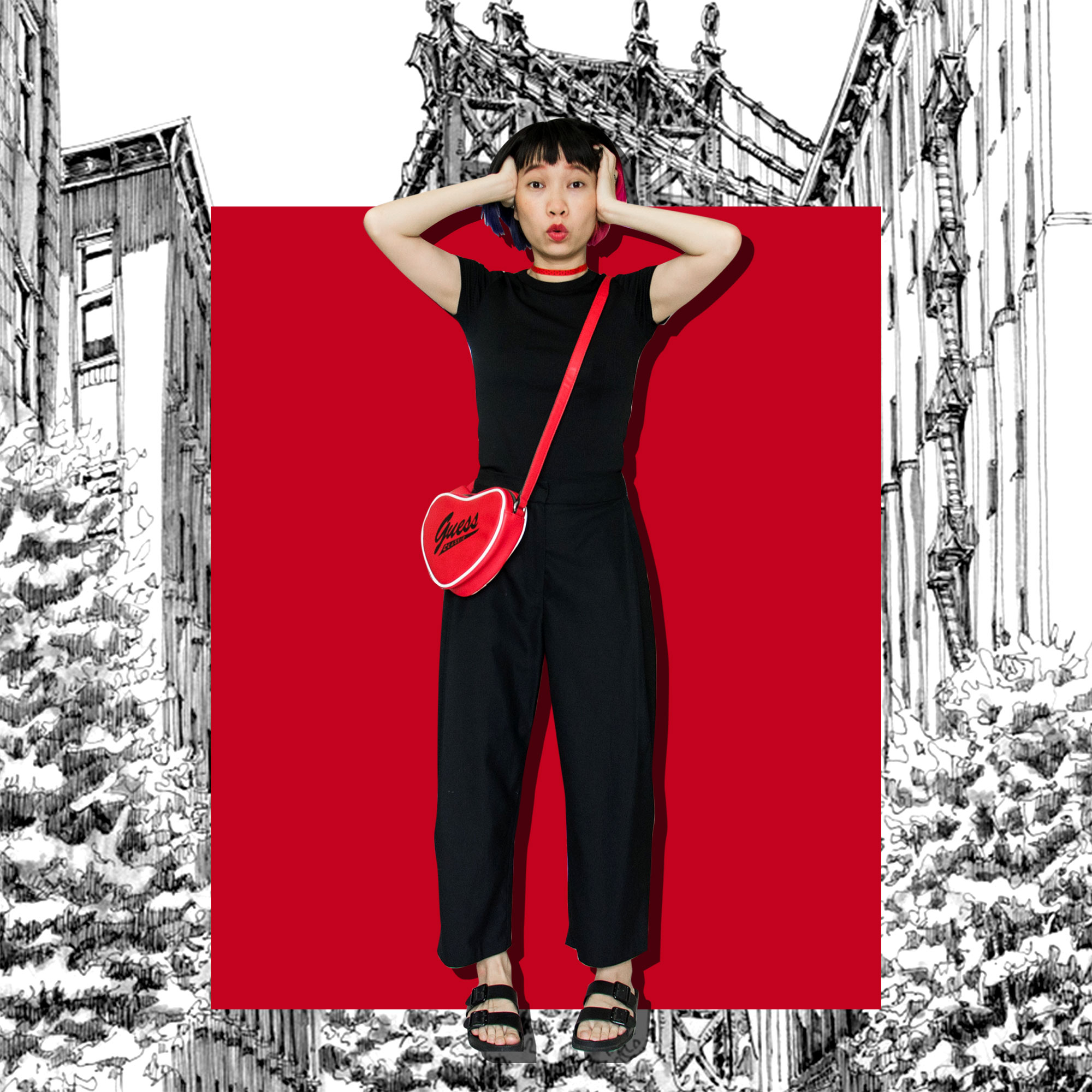 This is my very first bag in heart shape, normally I only choose square or box shaped bag, but this one this time is an exception. I style myself in black because I really wanted the bag to stand out and be the highlight of my outfit. I did add a red choker to make the whole outfit look less simple.