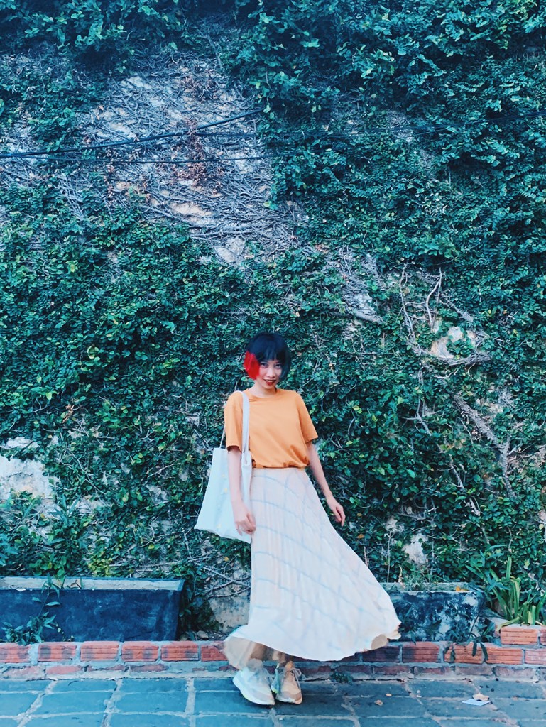 Actually my crew had a dress code for Hoi An, all of us dressing in warm yellow tone and took a bunch of beautiful photos. I pair a basic Uniqlo mustard tee with my new Zara skirt (hunt it while it was on sale couple months ago), and my new kicks, which was the only pair I brought for this trip. They go well with all of my outfits and very comfy to walk around all day.