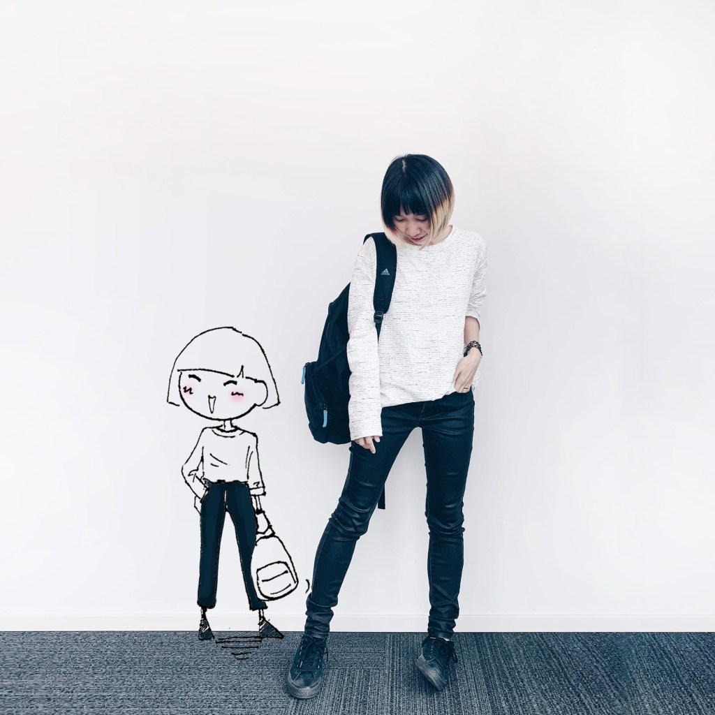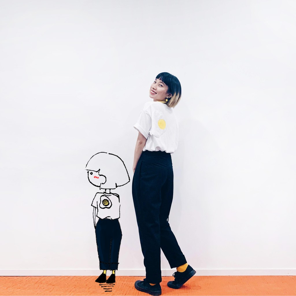 Dressing down my office pants, actually ain’t that decent because I made it dropped crotch but you can’t really tell just by looking at the photo. I love dressing down all the office look by adding some cute details, this one is my fried egg tee – self made by sewing a patch to an Uniqlo tee. Picking out the yellow color from the egg to wear a mustard pair of socks, and black sneakers as always.